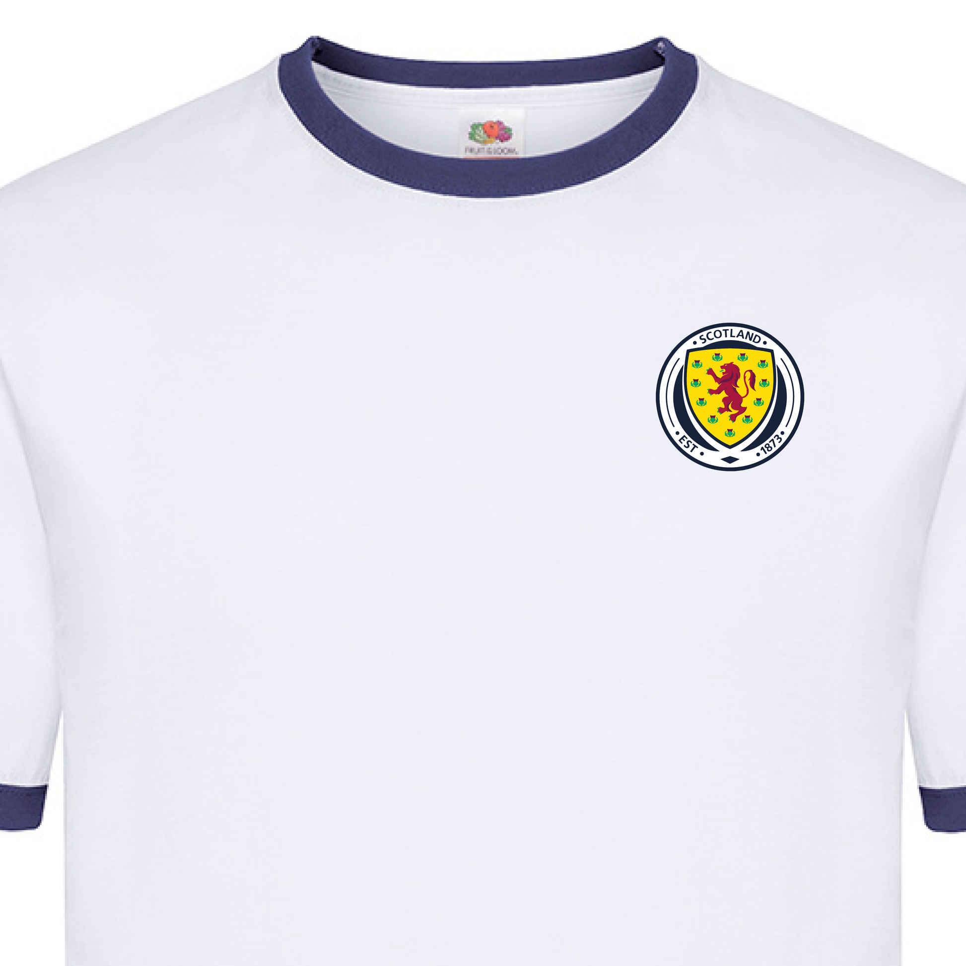 Show your support in timeless style with our Retro Scotland Crest Ringer T-Shirt, featuring a classic Scotland-inspired badge design and optional personalised name and number on the back.